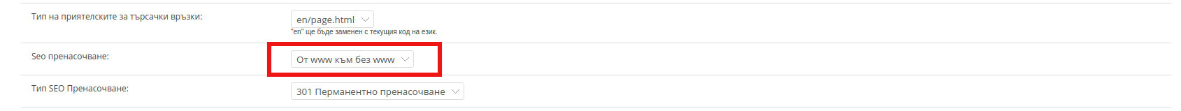 7. Платформа Seliton поддържа пренасочване към www или към без www. Някои SEO оптимизатори предпочитат конкретна настройка на пренасочванията.