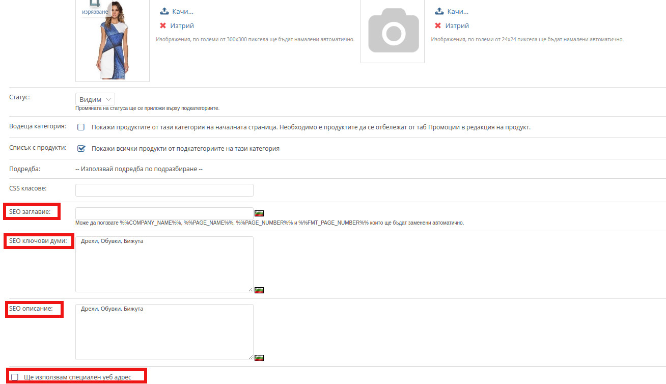 24. Наличен е таг и за SEO ключови думи - може да въведете ключовите думи на конкретната категория.
