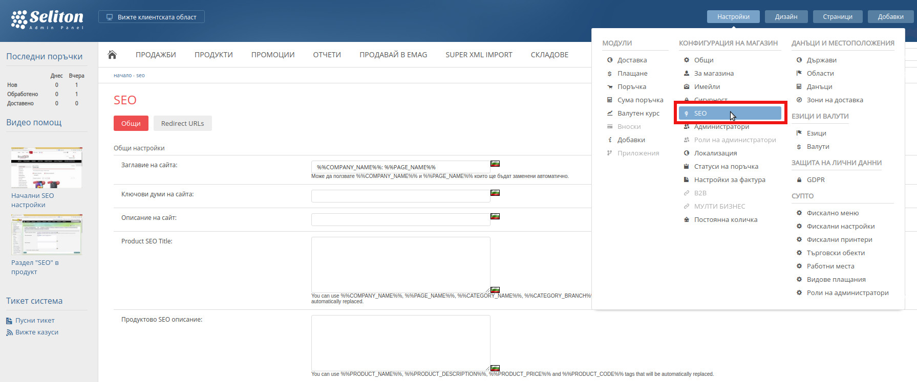 5. Seliton има автоматизирано създаване на приятелски за търсачките URL. Можете и да променяте URL-то на конкретни продукти, категории, марки и други.
