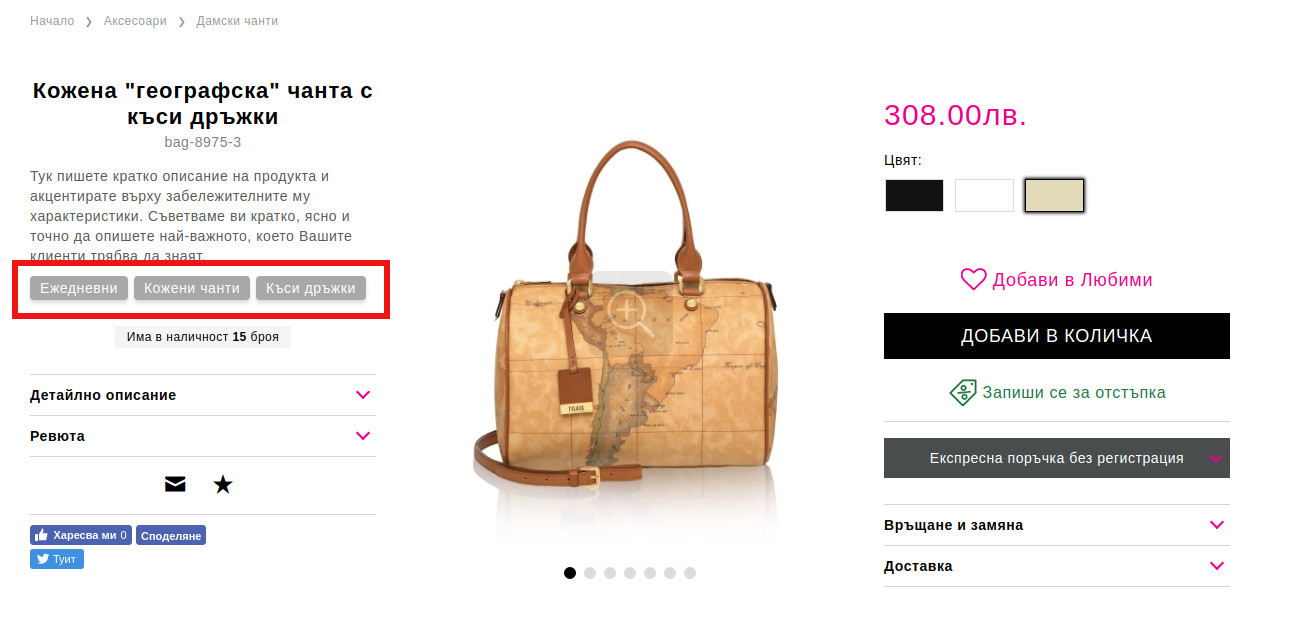 20. Като част от новостите в SEO изискванията, от версия 10 в система Seliton има Тагове в Продуктова страница - тази функционалност създава допълнителна (хоризонтална) свързаност между Вашите продукти (освен категорийна свързаност). Това внася допълнителна релевантност (качество) на съдържанието в магазина ви и като резултат - повишава общата стойност на вашата оптимизация.