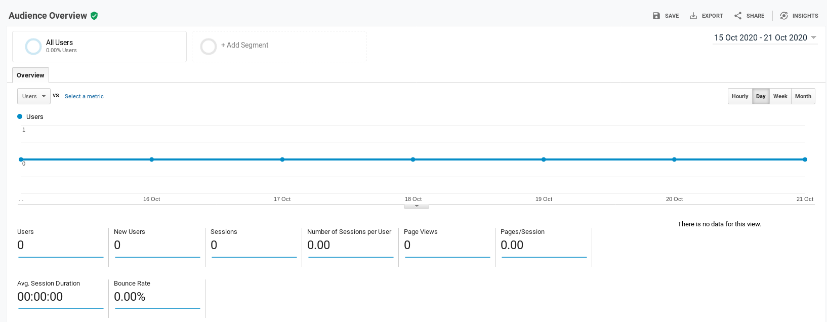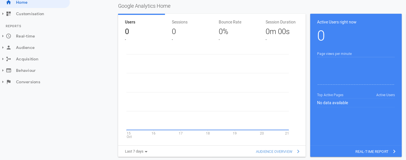 Google Analytics Ви представя подробен разбор на най-различни графи с данни за трафика към Вашия онлайн бизнес. Чрез платформата вие можете да следите графата Преглед на аудиторията (Audience Overview). В нея можете да видите и правите анализи на броят сесии, потребители, преглеждания на страниците Ви, продължителност на сесията, нови сесии, степен на отпадане и други подобни метрики за избран от Вас период от време.