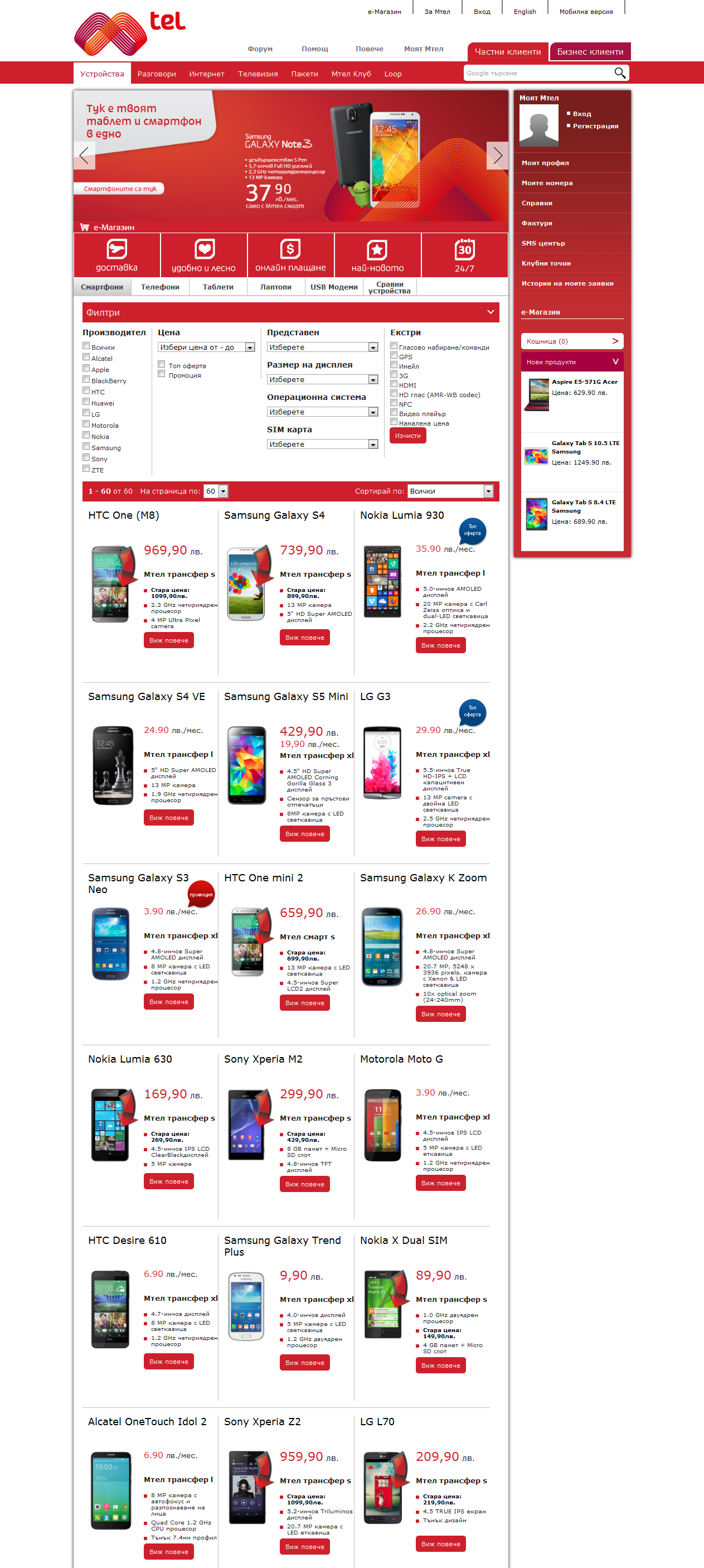 Онлайн магазинът на Мтел има капацитет да изпълнява всички операции, които се извършват във физически магазин