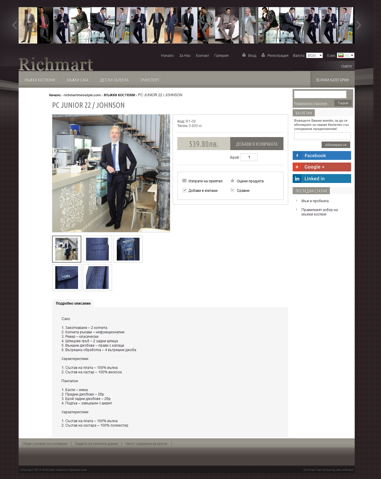 Елитният бранд за мъжки костюми Richmart пусна онлайн магазин за поръчки от България и света.