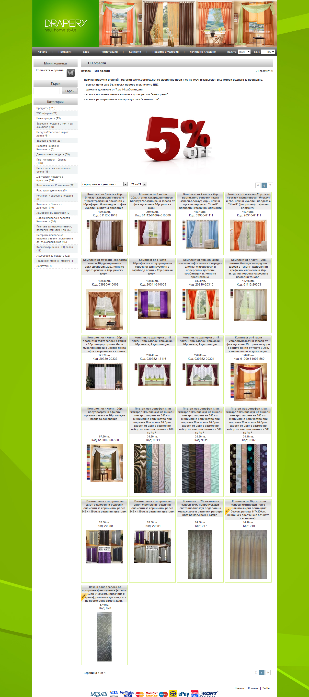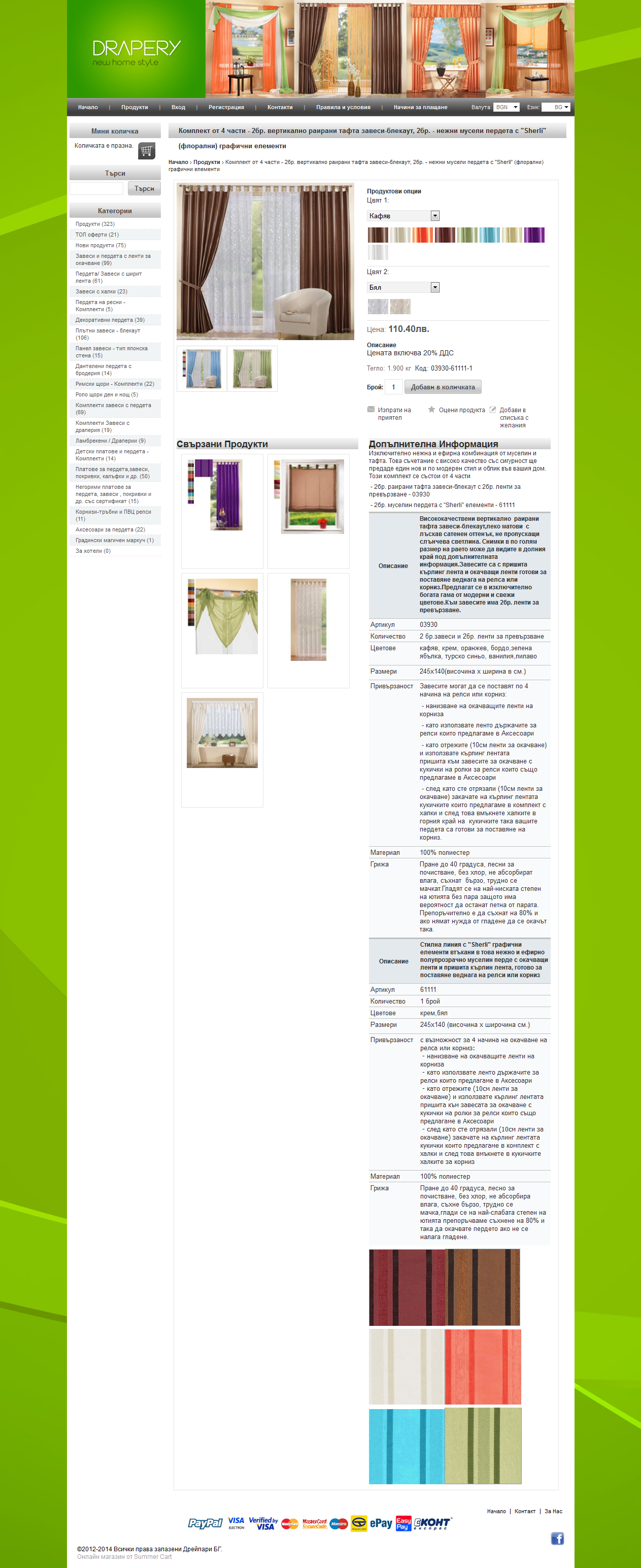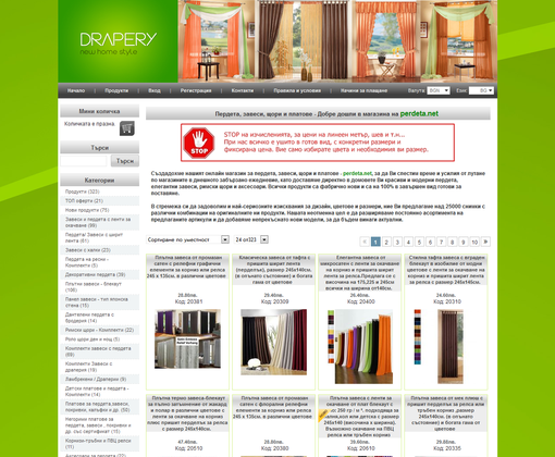 Онлайн магазин с най-голям асортимент от готови пердета, завеси, драперии, щори и платове, са над 30 000 продукта