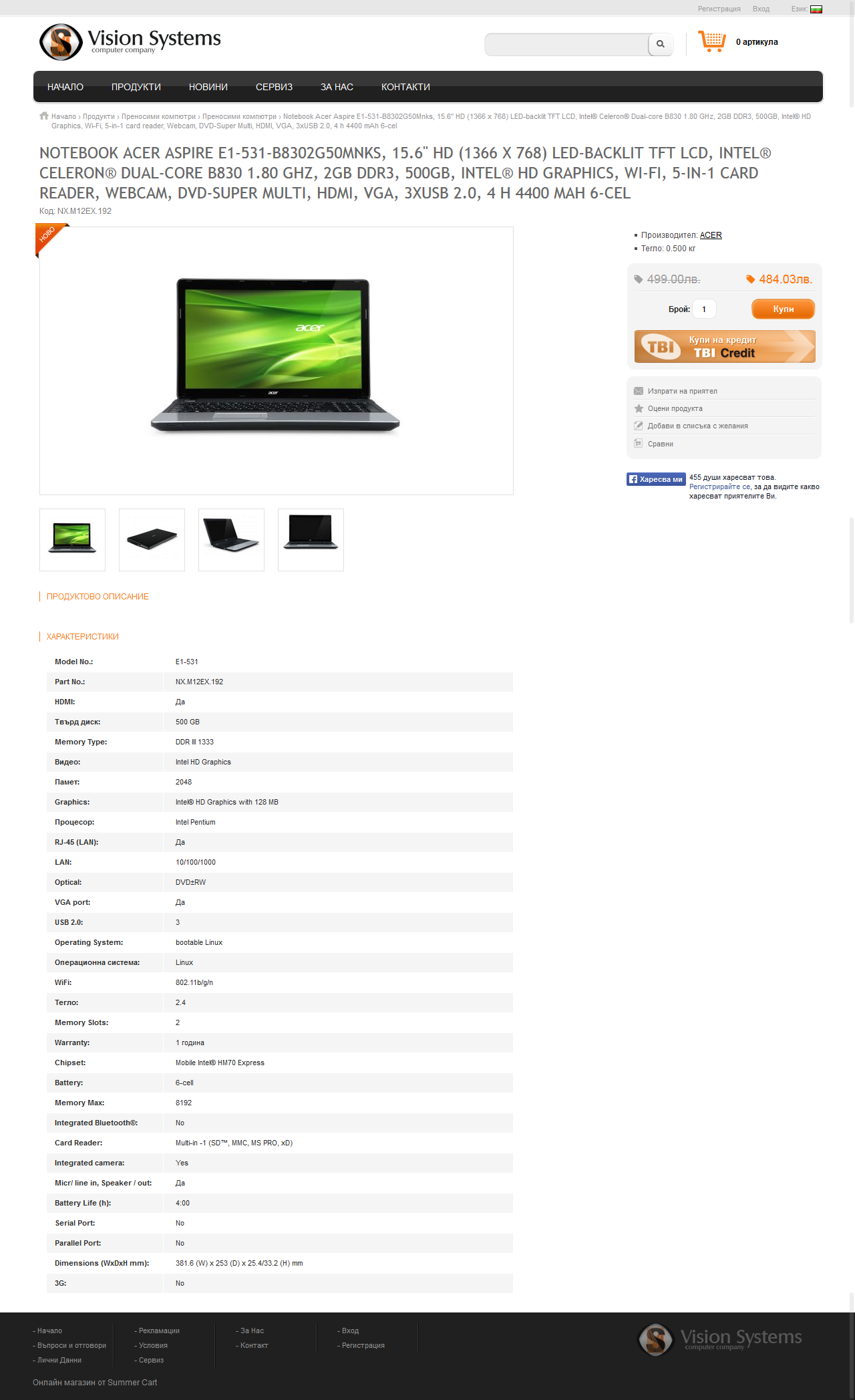 Вижън Системс ЕООД е компания предлагаща компютри, компютърни технологии и улуги още от 2007 г. От тогава до сега фирмата се развива успешно, базирайки се на качество, иновации и надеждност.