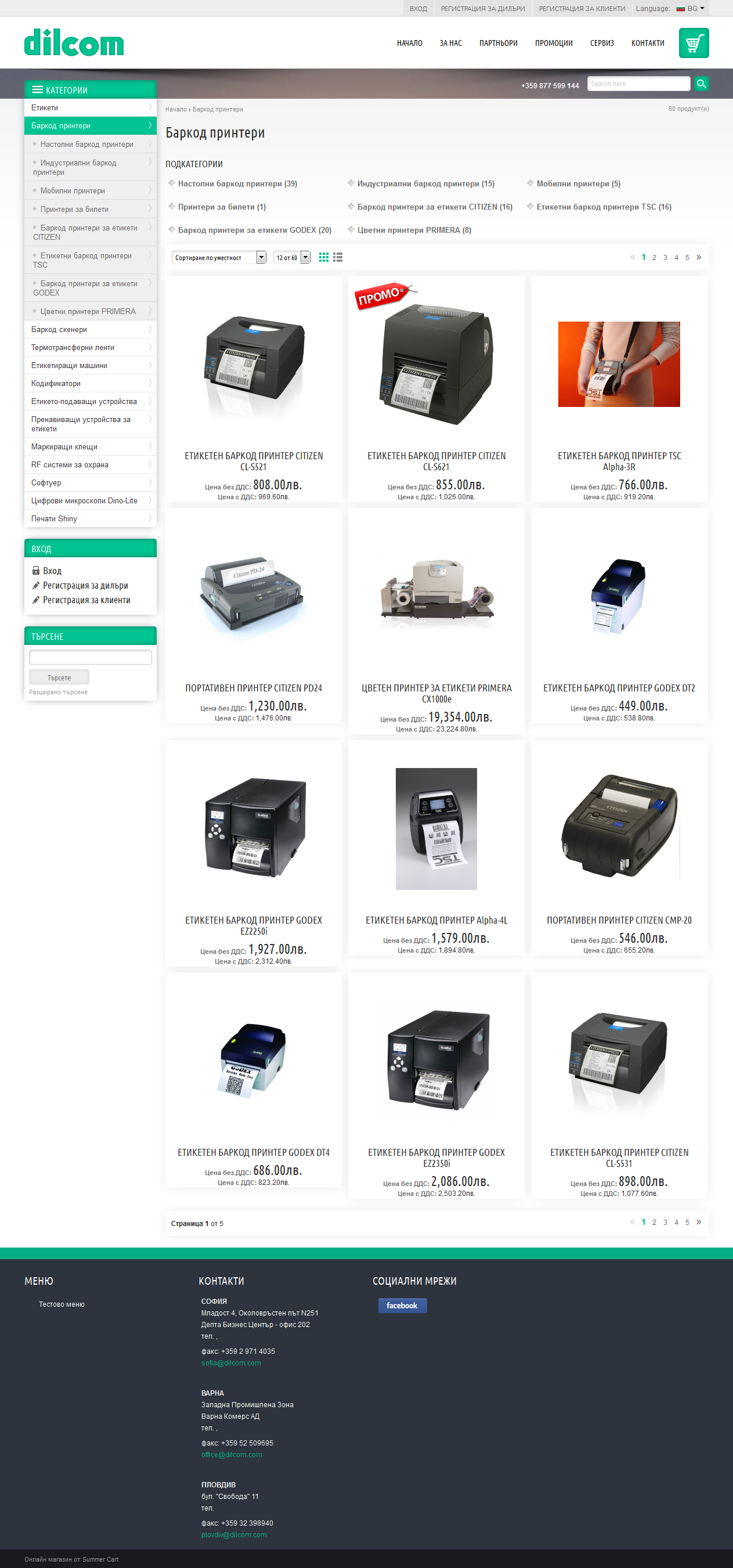 Е-магазин Дилком за търговия на едро с етикети, баркод принтери и скенери