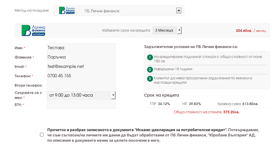 Увеличете продажбите си чрез продажба на стоки на лизинг. Модулът е обновен 15 юли 2020 и ползва Web Service 2 на ПБ Лични финанси.