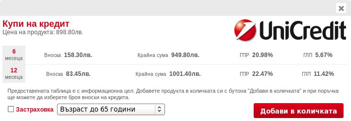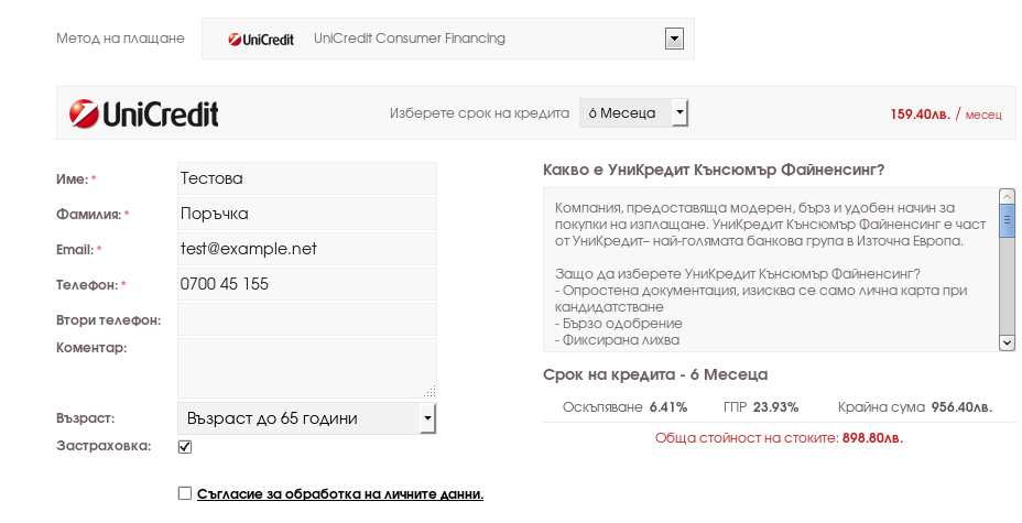 За да ползвате модула е необходимо да сключите договор с Уникредит Кънсюмър Файненсинг ЕАД. Модулът не е финансиран или специфициран от Уникредит Кънсюмър Файненсинг ЕАД, а е изцяло авторска разработка на Seliton изработена по предоставена документация от Уникредит Кънсюмър Файненсинг ЕАД на общи клиенти.